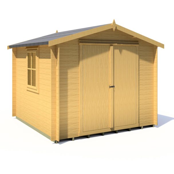 9×9 Shire Bradley Log Cabin Apex Roof Double Doors