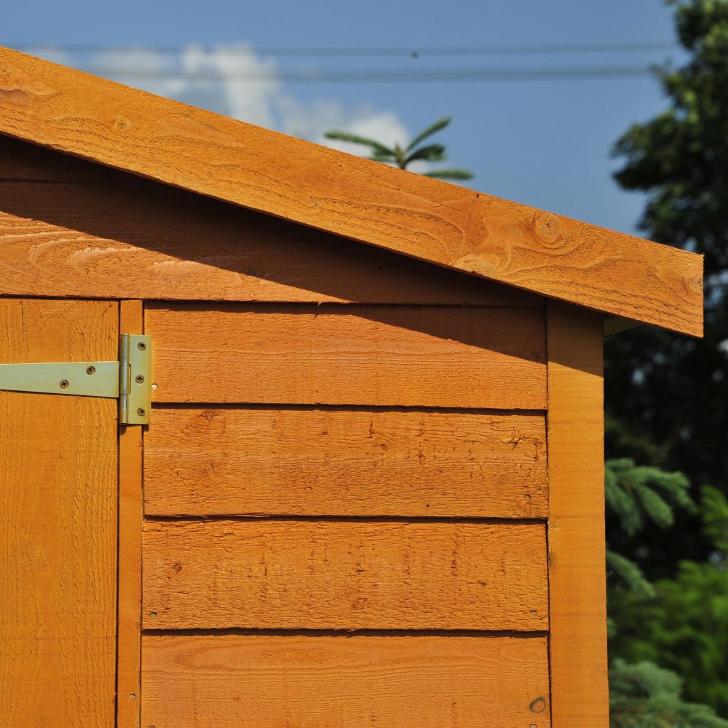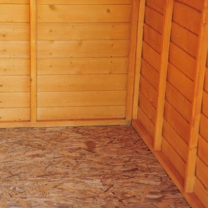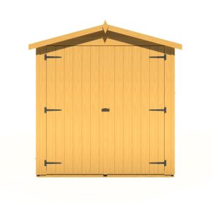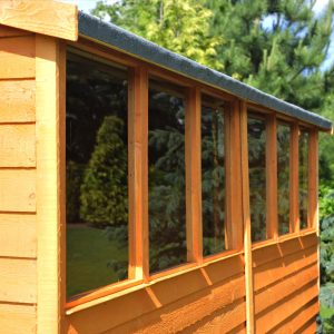 The 10′ x 6′ double door, overlap apex shed is an attractive feature in any garden. Windows down one side provide plenty of light and have safety glazing. Windows can be fitted on either side and are non-opening. The double doors in the 6′ Gable and generous eaves height allow very easy access to the entire space. It is manufactured from high grade, slow grown, FSC approved, European pine cladding boards over 34mm square framing. The doors are fitted with a hasp and staple catch ready for your own padlock. Both roof and floor are constructed from solid sheet OSB. The building is dip treated with a basecoat ready for top coating by the customer immediately on installation. All fixings, roof felt and assembly instructions are provided. (Imperial dimensions are approximate to the nearest foot, please refer to the exact metric dimensions given)