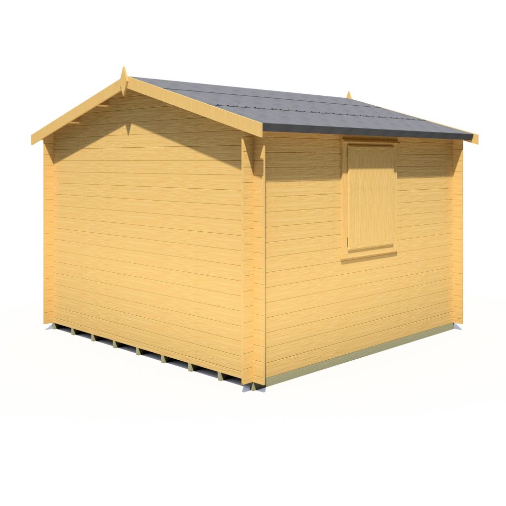 A robust log cabin style garden shed or workshop with a fully framed single door, a joinery quality opening window complete with shutter. Tongue and groove roof and floor with pressure treated bearers. Door is fully framed and features a full length piano style hinge to improve security. The side hung opening window is a joinery standard, storm resistant design. The interlocking timbers that make up the walls of the building are 19mm thick some 50% thicker than a normal garden shed; roof and floor are 12mm thick. Where dimensions are critical please check internal (Floor) sizes as Log cabins are sized to the edge of the individual boards. Internal eaves height is a full 6′ (1825mm) The building is manufactured here in the UK and all of the wood used is high grade, FSC approved Northern European Pine. The floor is included in the price.