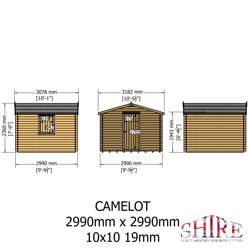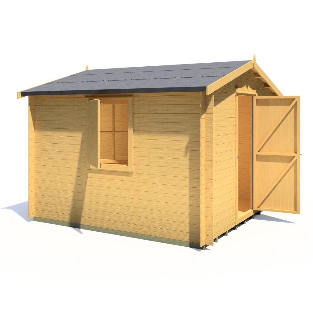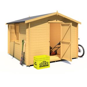 10×10 Shire Camelot Log Cabin Apex Roof Single Door