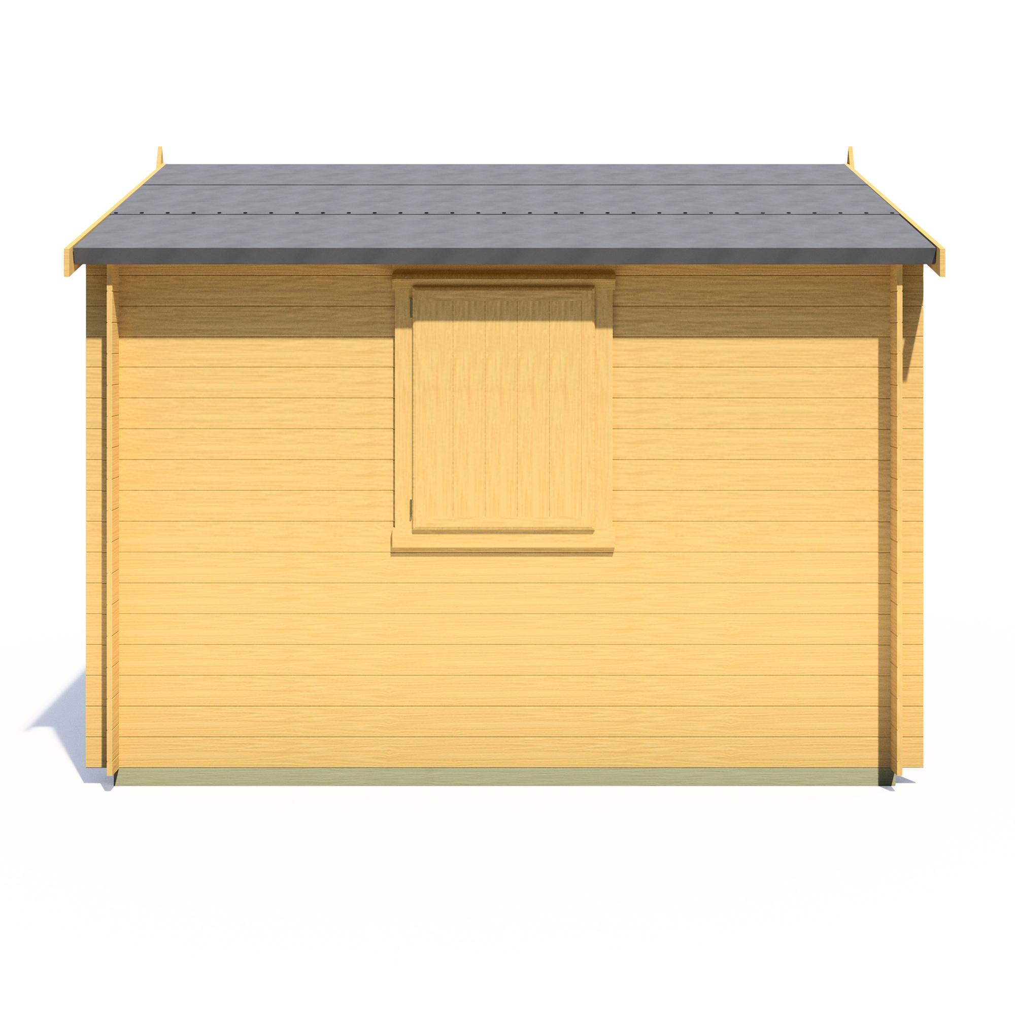 A robust log cabin style garden shed or workshop with a fully framed single door, a joinery quality opening window complete with shutter. Tongue and groove roof and floor with pressure treated bearers. Door is fully framed and features a full length piano style hinge to improve security. The side hung opening window is a joinery standard, storm resistant design. The interlocking timbers that make up the walls of the building are 19mm thick some 50% thicker than a normal garden shed; roof and floor are 12mm thick. Where dimensions are critical please check internal (Floor) sizes as Log cabins are sized to the edge of the individual boards. Internal eaves height is a full 6′ (1825mm) The building is manufactured here in the UK and all of the wood used is high grade, FSC approved Northern European Pine. The floor is included in the price.