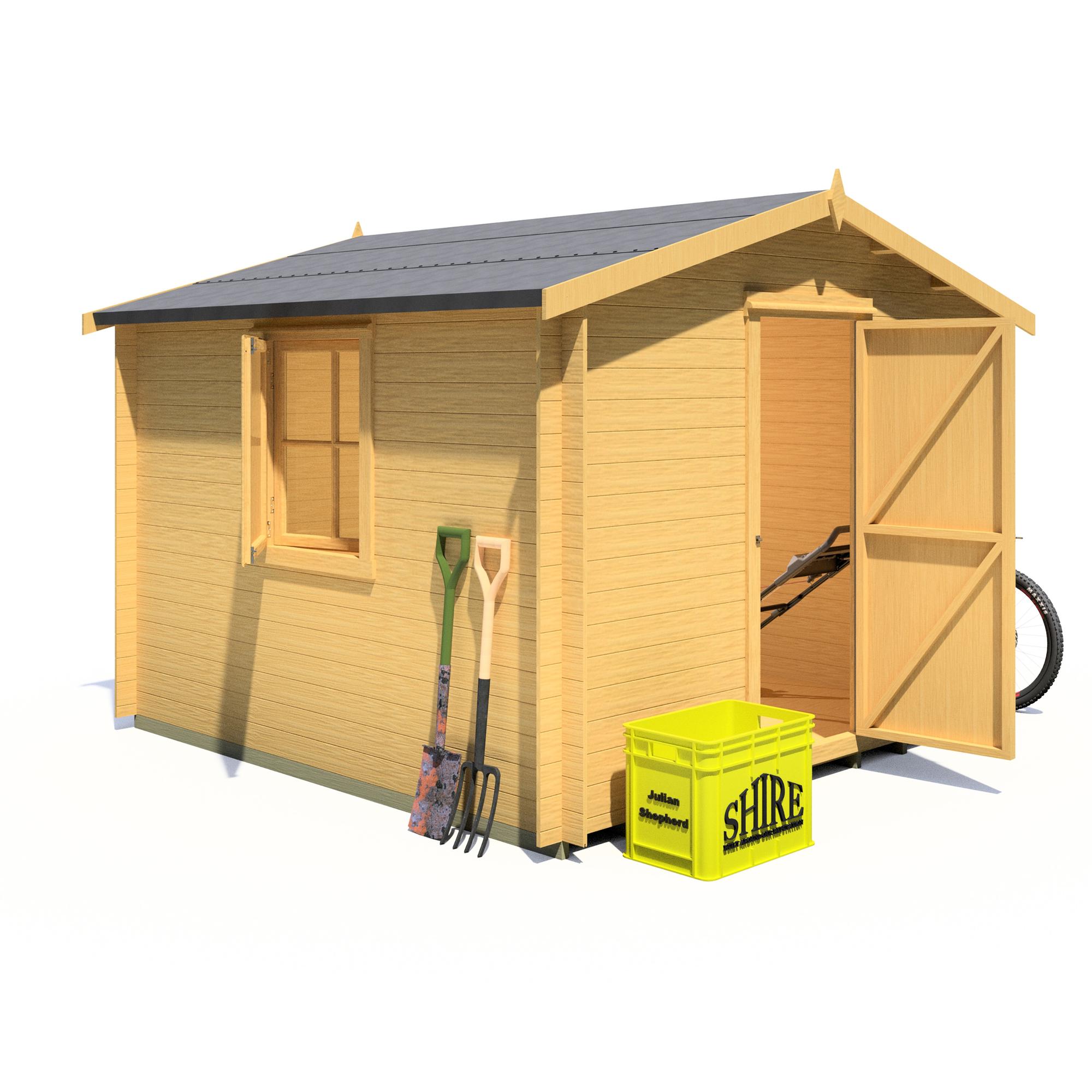 10×10 Shire Camelot Log Cabin Apex Roof Single Door