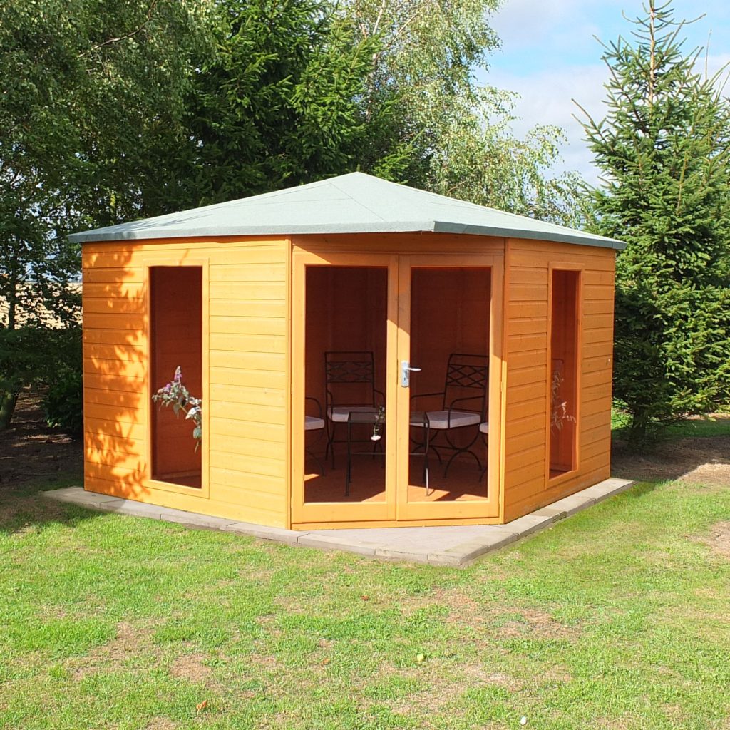 10×10 Shire Larkspur Shiplap Corner Summerhouse Pent Roof