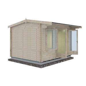 The 10′ x 12′ Shire Marlborough Log Cabin provides ample space for a variety of uses, from a home office to a creative studio. Constructed with 28mm interlocking logs, it ensures durability and comfort. The cabin’s design includes double doors and a large window, facilitating a bright and inviting interior environment.