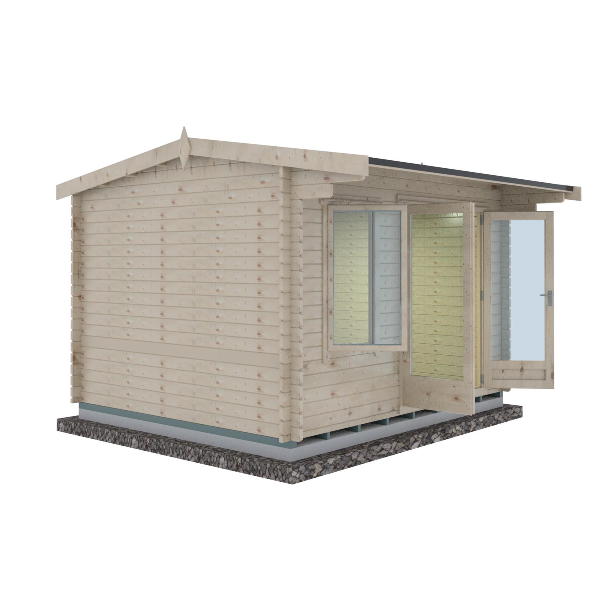 You can upgrade the log thickness to 34mm, 44mm, or 70mm, depending on your needs. With each upgrade, the floor and roof boards increase from 14mm to 19mm thick, and the roof joists are upgraded from 44mm x 70mm to heavy-duty 40mm x 120mm, offering even greater structural integrity and weather resistance.