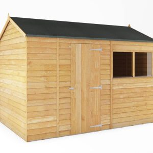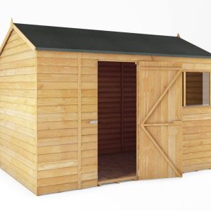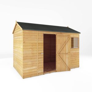 Our 10 x 6 Reverse Apex Overlap Wooden Shed is a spacious garden building designed to offer secure and durable outdoor storage. The large interior is ideal for storing bikes, wheel barrows and lawn mowers, as well as gardening tools and equipment. Featuring a shatterproof styrene glazed window to the front, this building fills with light, making it easy to locate your items. The single door has been braced with internal ledging, and a pad bolt is included for security.