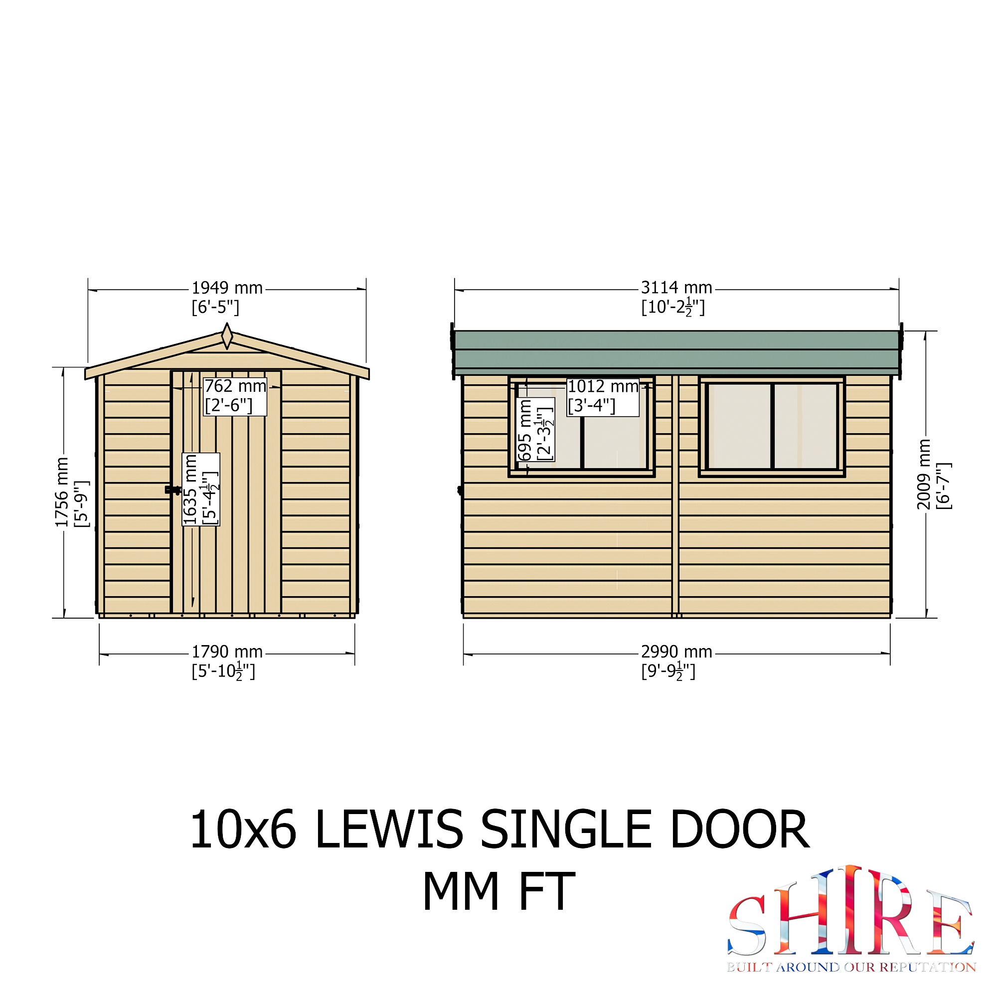 10×6 Shire Lewis Shiplap Single Door Apex Wooden Shed