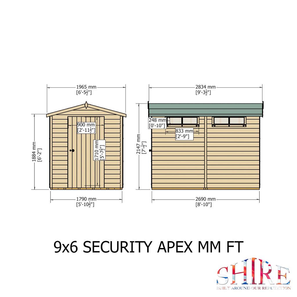 10×6 Shire Security Shiplap Shed Apex Roof Single Door
