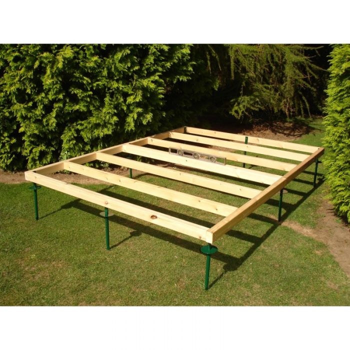 The Adjustable Shed Base is specially designed to provide a quick and easy base for your shed. Simply assemble the bearers in the kit as directed and attach each of the adjustable legs. Provided the ground is not more than 100m out of level the difference can be adjusted by moving the sliding discs on the legs and then locking them into place as the base is progressively hammered into the ground. No digging and no concrete to mix. This product is designed specifically for use with any of our appropriately sized buildings, it is not guaranteed to work with buildings from any other manufacturer. (Imperial dimensions are approximate to the nearest foot, please refer to the exact metric dimensions in the data given)