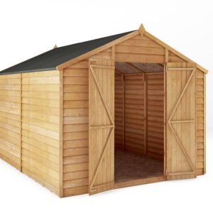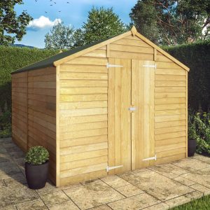 This 10 x 8 Overlap Apex Windowless Shed is a fantastic option for those looking to expand the storage space within their garden. The large interior size and double doors provide easy access and storage for larger items such as lawn mowers, bicycles and garden furniture. The windowless design ensures your belongings are safe, secure and out of sight. Made in the UK, using ethically sourced, FSC certified timber, this shed is great for those looking for a secure storage solution that offers excellent value. The walls on this garden building are constructed using horizontal boards that overlap each other, this traditional method of construction creates solid panels that encourage rain water to run off the building, protecting your stored belongings from the elements. Complete with strong wooden internal framing, this building offers a rigid and long-lasting structure. The traditional apex roofline ensures there is plenty of height inside for taller items and storage units.