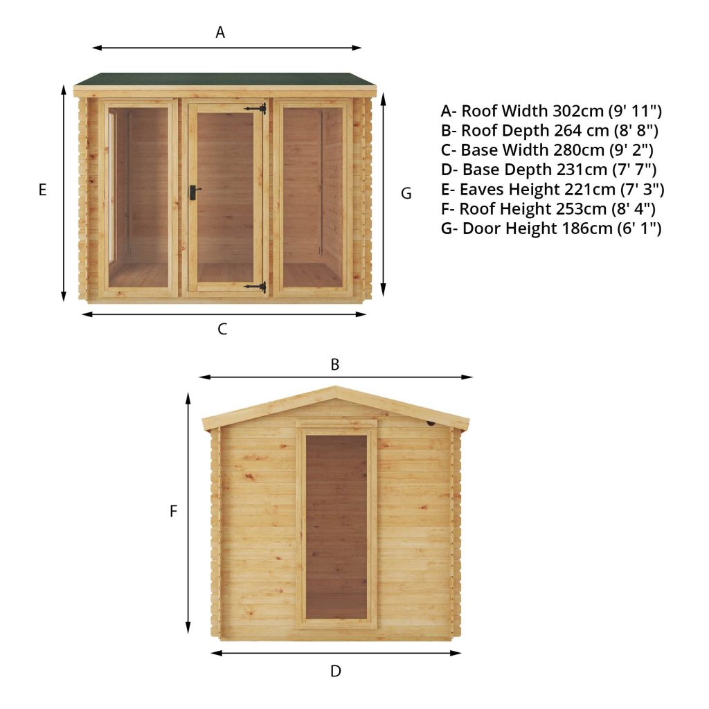 10×9 Mercia Contemporary Log Cabin Reverse Apex 19mm Logs