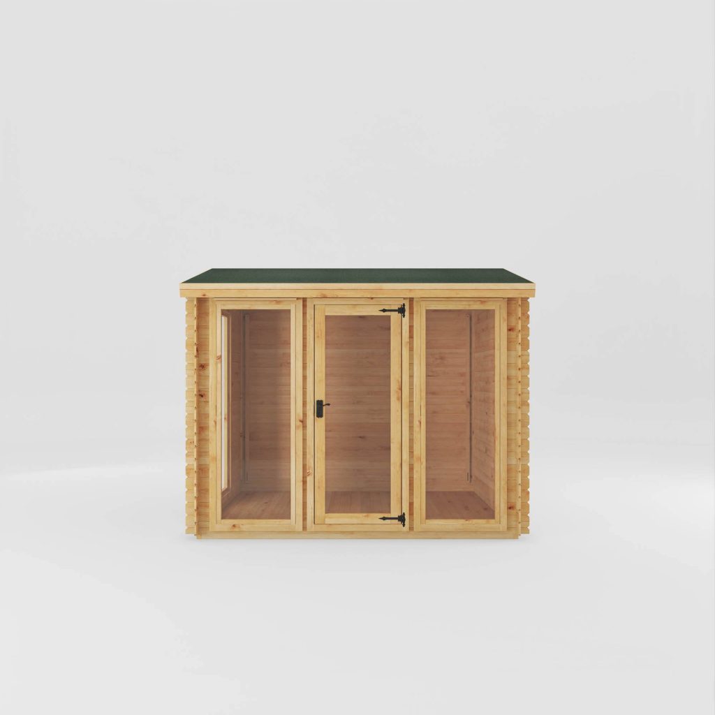 The 3m x 2.5m Log Cabin creates the perfect way to make the most of your garden, while in the comfort of the indoors. This elegant and stylish garden building is ideal for those who want to enjoy their garden and the summer weather while being shaded from the sun. Featuring floor to ceiling, glazed windows to the front and the side, this building floods with an abundance of light and air, and becomes a vibrant and inviting space for you to enjoy. We use a premium styrene material called SAN styrene for the glazing on this cabin, a high strength, safe and shatterproof alternative to glass.