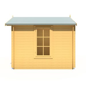 This beautiful 9 x 9 ft Barnsdale wooden cabin with double doors brings contemporary design to a popular garden retreat. Made from high grade FSC approved timber with interlocking log cladding and a tongue and groove roof and timber floor, you can be sure there”s no compromise on this traditional and sturdy design. The extended roof overhang provides shade and shelter from the rain. The opening joinery window fits either side of the cabin, offering you flexibility and choice as well as natura illumination. Whether you use this cabin as a summerhouse. a workshop or simply storage space, this well crafted design makes it all possible. Supplied untreated. Allowance should be made for roof overhang and access for painting and during installation.