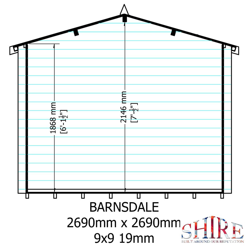 10×9 Shire Barnsdale Log Cabin Apex Roof Double Doors