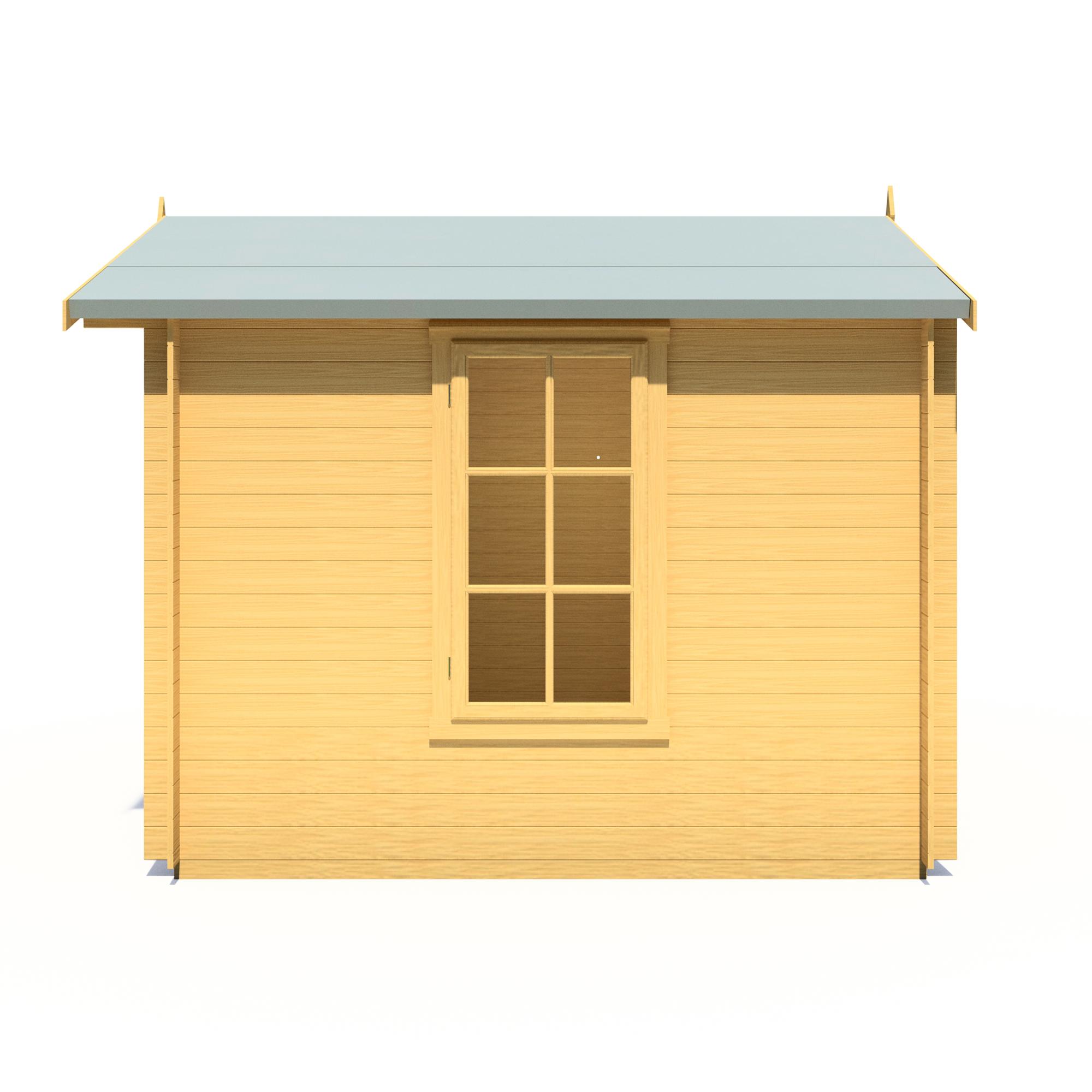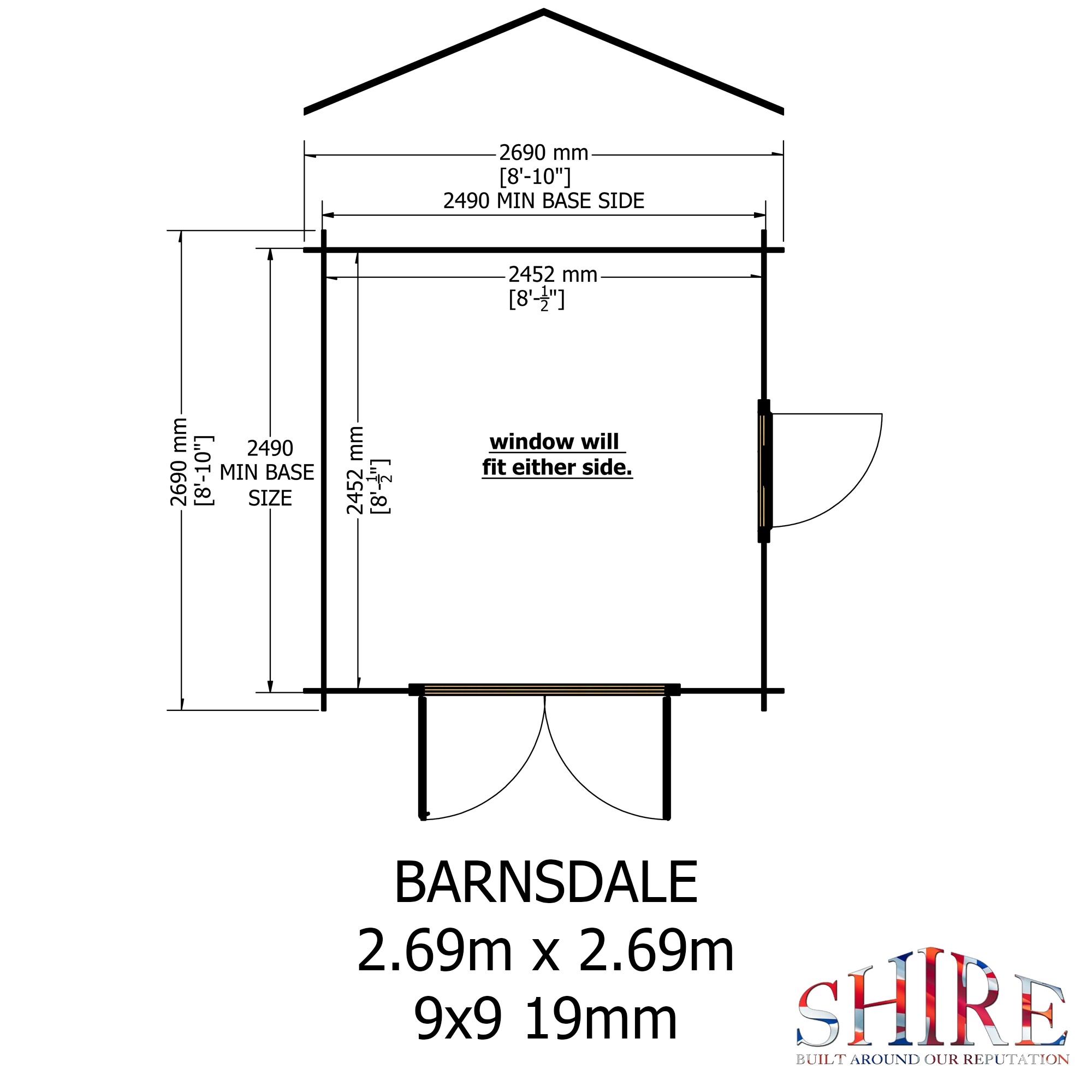 This beautiful 9 x 9 ft Barnsdale wooden cabin with double doors brings contemporary design to a popular garden retreat. Made from high grade FSC approved timber with interlocking log cladding and a tongue and groove roof and timber floor, you can be sure there”s no compromise on this traditional and sturdy design. The extended roof overhang provides shade and shelter from the rain. The opening joinery window fits either side of the cabin, offering you flexibility and choice as well as natura illumination. Whether you use this cabin as a summerhouse. a workshop or simply storage space, this well crafted design makes it all possible. Supplied untreated. Allowance should be made for roof overhang and access for painting and during installation.