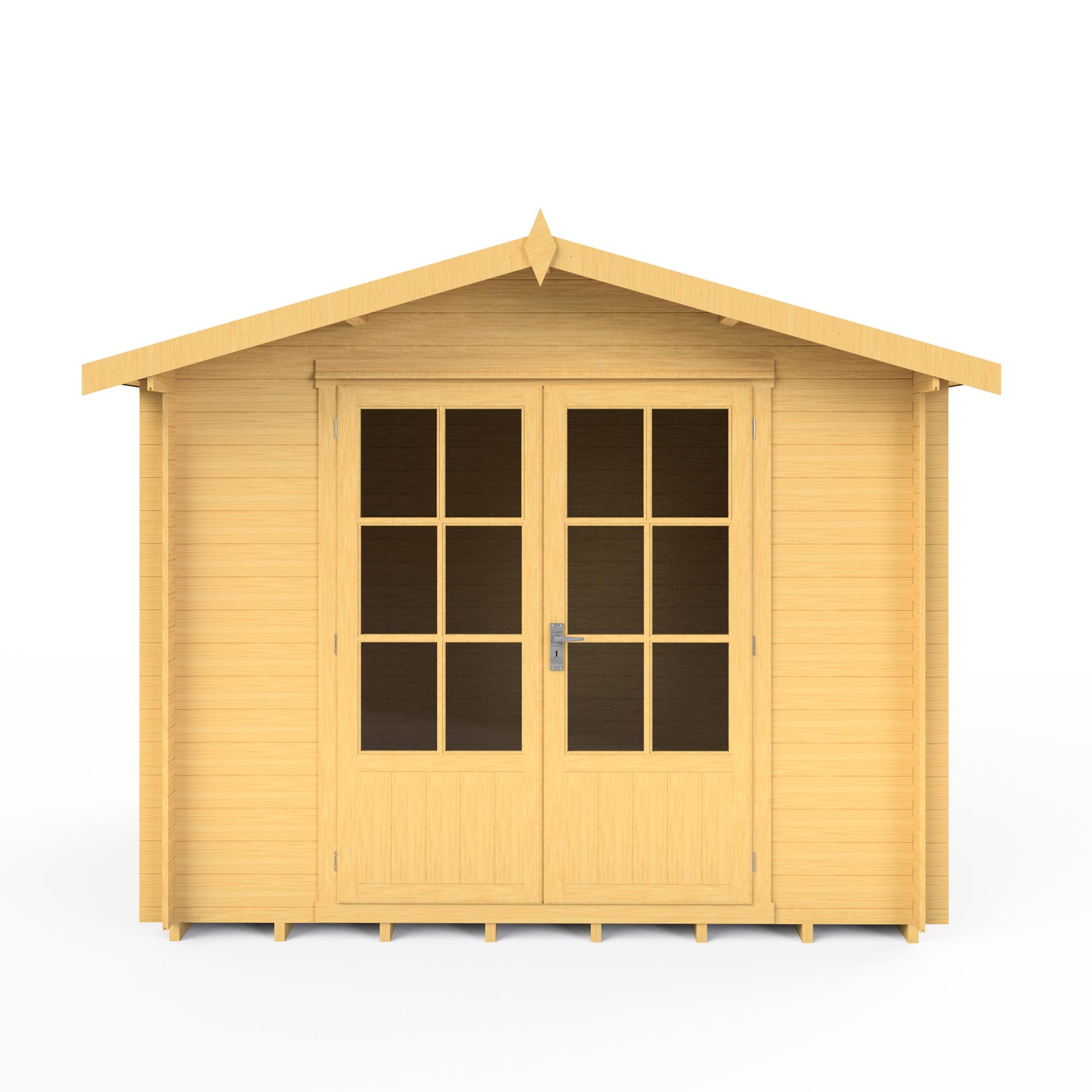 10×9 Shire Barnsdale Log Cabin Apex Roof Double Doors