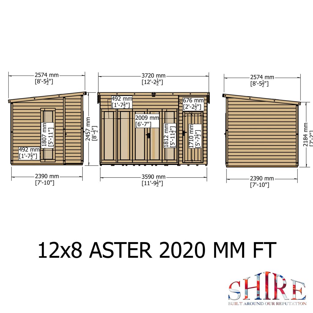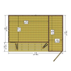 A contemporary summerhouse featuring folding doors across the front of the building (4 of the 6 front panels open). To compliment the fully glazed front there are two opening side windows. It is constructed on strong 44mm square framing and clad with planed Shiplap tongue and groove boards made only from the highest grade, slow grown, FSC approved northern European pine. The Summerhouse is supplied with a dip treated base coat preservative ready for you to top coat immediately after installation. The window and doors are joinery made quality and of a storm resistant design. (Imperial dimensions are approximate to the nearest foot, please refer to the exact metric dimensions in the data given) Allowance should be made for the roof overhang and access for painting and during installation.