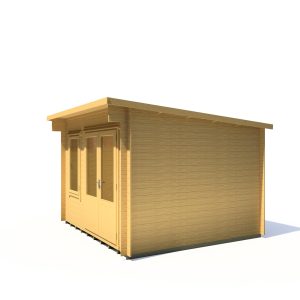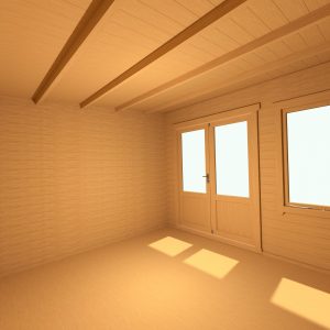 The Edgefield is a very popular choice with it’s contemporary good looks! A robust log cabin, it has lockable, glazed double doors and a matching joinery quality, opening window, all with toughened glass as standard. The cabin comes with a tongue and groove roof and floor with pressure treated bearers. The double door and opening window positions are interchangeable. The interlocking timbers that make up the walls of the building are 19mm thick, some 50% thicker than a normal garden building; roof and floor are 12mm thick. The building is supplied untreated ready for you to paint or stain immediately after assembly. Where dimensions are critical please check internal (floor) sizes as building dimensions are to the edge of the individual boards that make up the cabin and will include the crossover of the logs. Internal eaves height is over 6′ (1825mm) for a really spacious interior. Please note that log cabins are supplied as individual log boards that are assembled length by length, building up from the floor; not pre-made panels. The building is manufactured here in the UK and all of the wood used is high grade, FSC approved Northern European Pine. Assembly instructions and mineral roof felt are included. Following your order, you will be sent a link to choose your delivery day. On the morning of delivery day you will also receive live tracking information. This cabin needs a base to sit on, flat and level to a sufficient size. Grass, soil or gravel are not sufficient as they will move with the weight of a building.