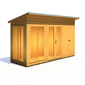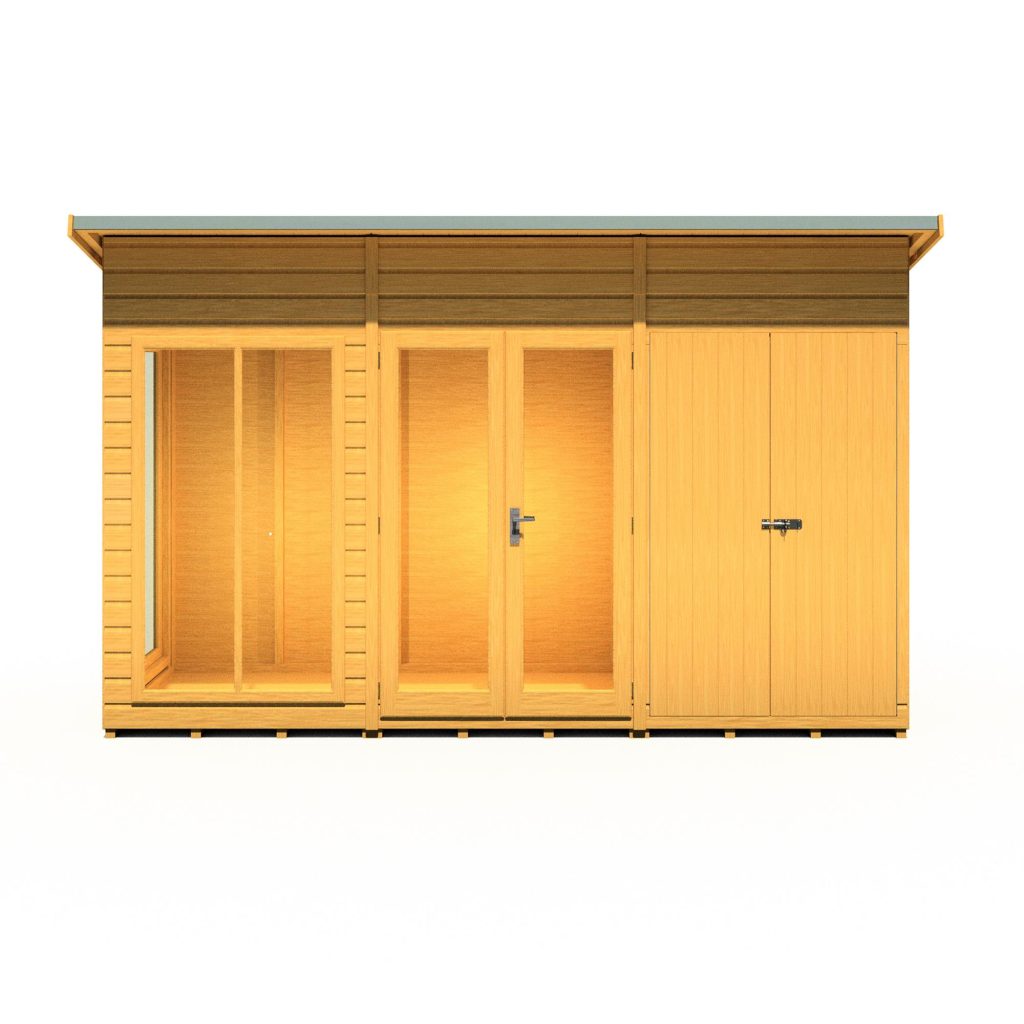 Imagine transforming your garden into a stylish haven with the 12 x 4 Lela Summerhouse. This versatile structure boasts a separate storage room, offering ample space for your garden essentials while keeping your relaxation area clutter-free. With a comfortable 7ft eaves height, the Lela provides a spacious interior perfect for summer dining, unwinding, or indulging in your hobbies.