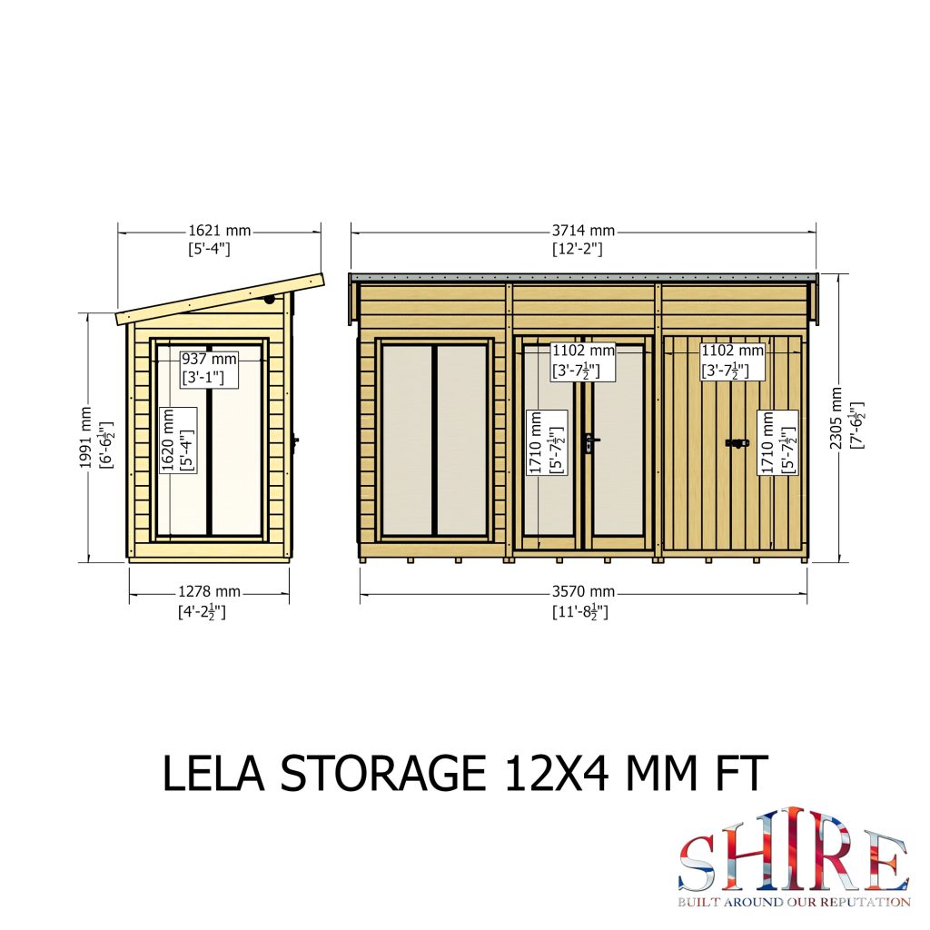 12 x 4 Shire Lela Summerhouse Shiplap T&G Double Door Secure Lock