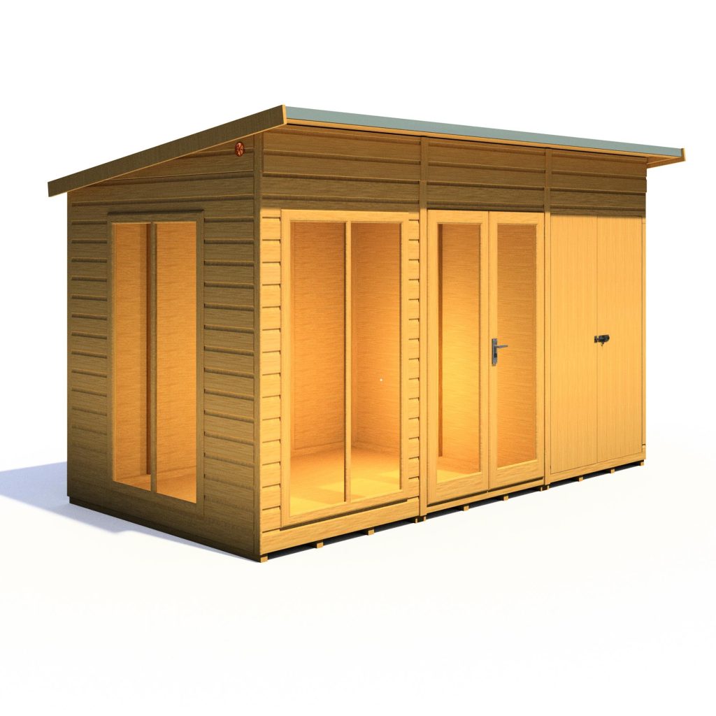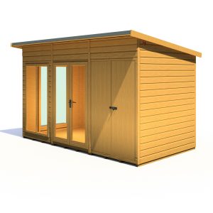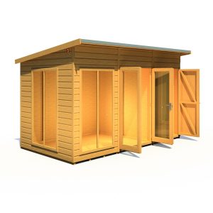 Imagine transforming your garden into a stylish haven with the 12 x 6 Lela Summerhouse. This versatile structure boasts a separate storage room, offering ample space for your garden essentials while keeping your relaxation area clutter-free. With a comfortable 7ft eaves height, the Lela provides a spacious interior perfect for summer dining, unwinding, or indulging in your hobbies.