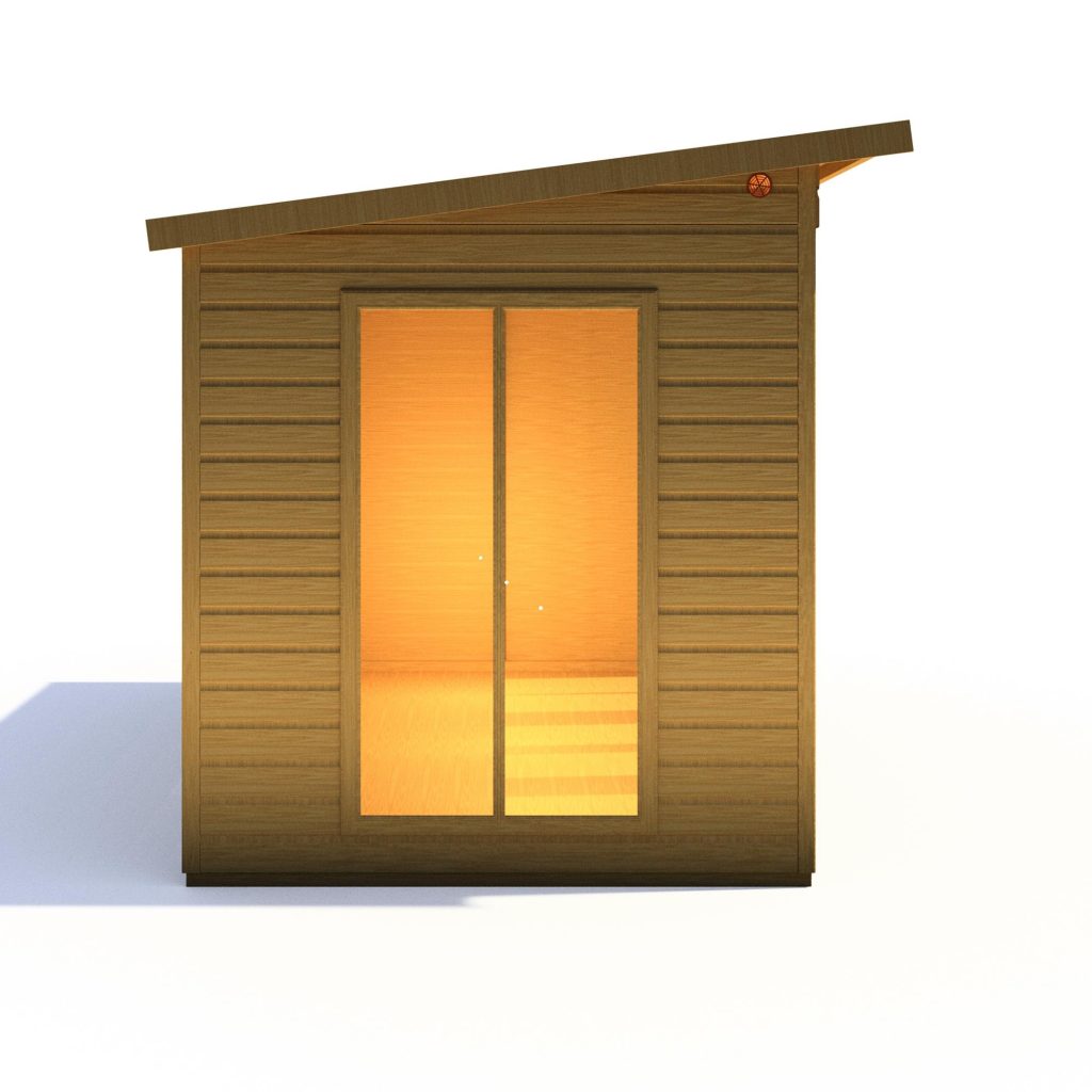 Crafted with quality in mind, the Lela features joinery-made double doors secured by a mortice lock and a single door with a padbolt provision for added security. Fixed windows with styrene safety glazing allow natural light to fill the space, while the sturdy construction ensures year-round enjoyment. Mighty 44mm square framing and planed shiplap tongue and groove boards, made from slow-grown pine, guarantee durability in any weather. The 12mm matching T&G floor and roof, along with the supplied mineral felt, provide a solid foundation for your outdoor retreat.