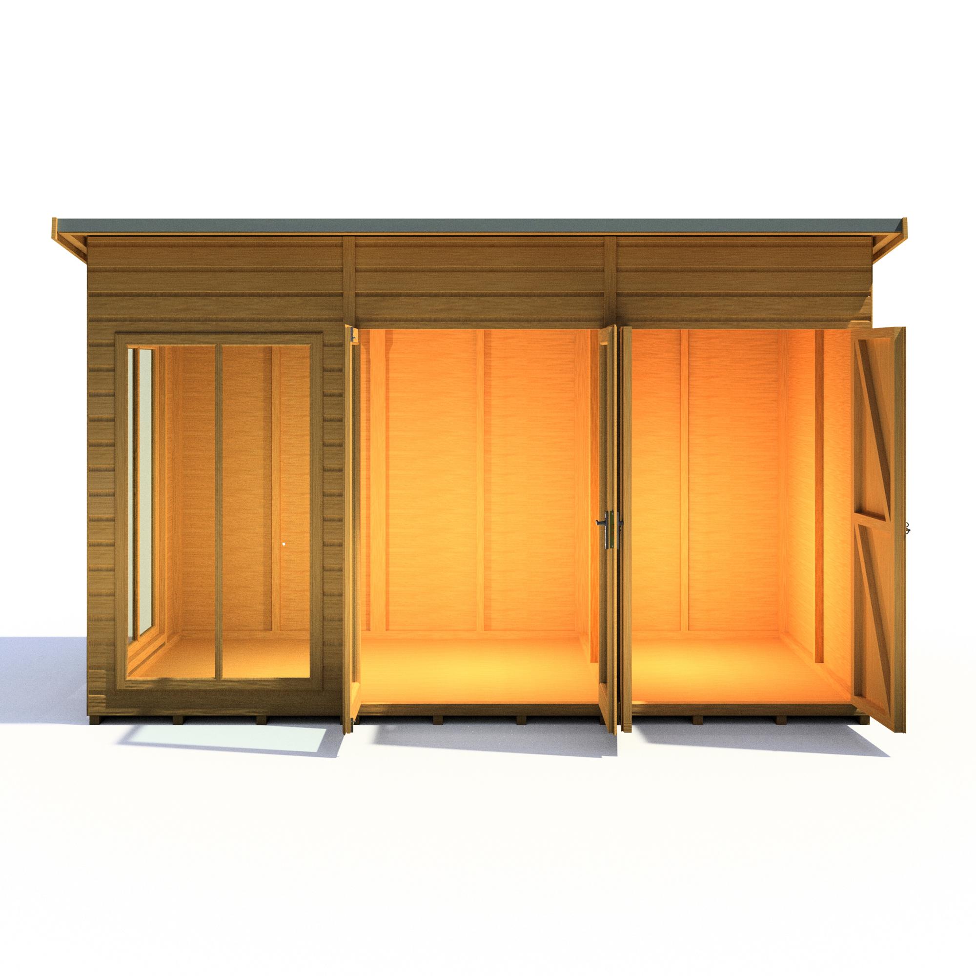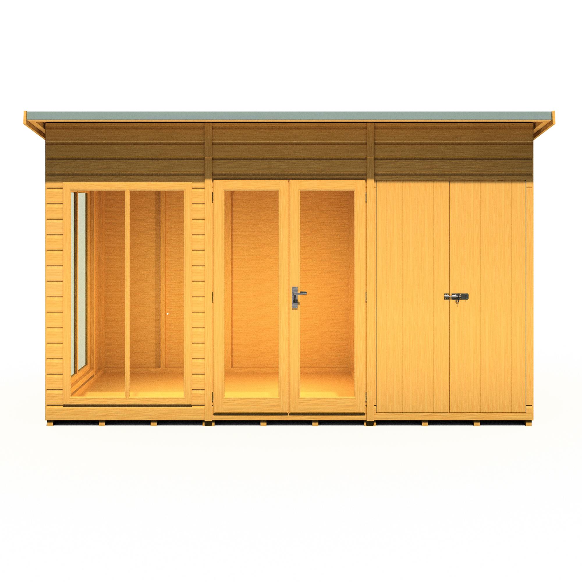 Imagine transforming your garden into a stylish haven with the 12 x 6 Lela Summerhouse. This versatile structure boasts a separate storage room, offering ample space for your garden essentials while keeping your relaxation area clutter-free. With a comfortable 7ft eaves height, the Lela provides a spacious interior perfect for summer dining, unwinding, or indulging in your hobbies.