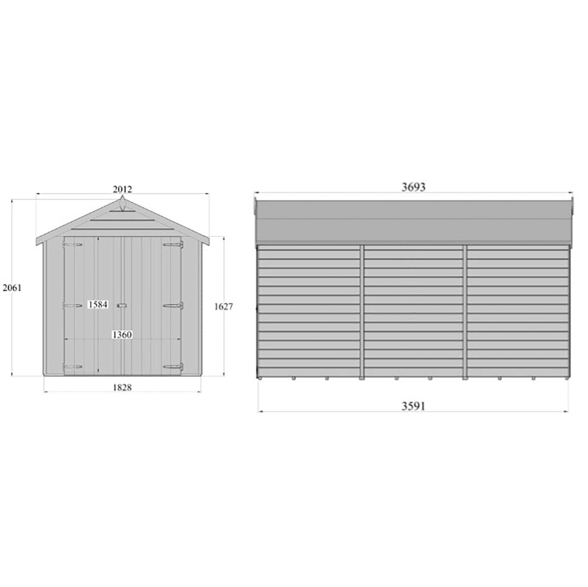 12 x 6 Shire Overlap Apex Shed Double Doors Windowless