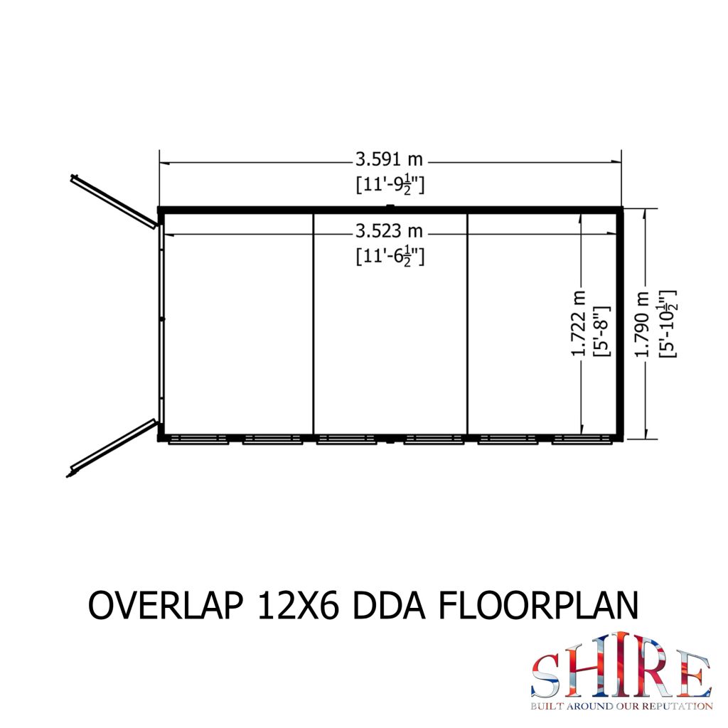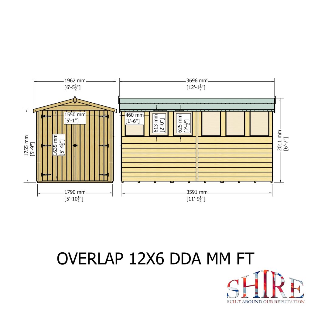 12 x 6 Shire Overlap Apex Shed Double Doors Windows