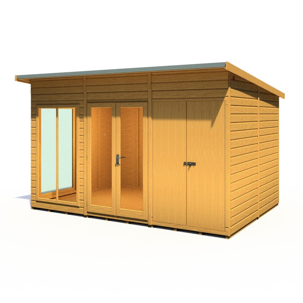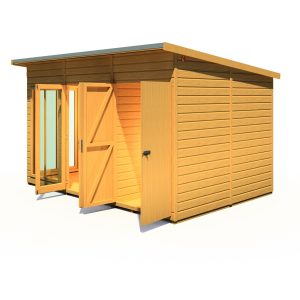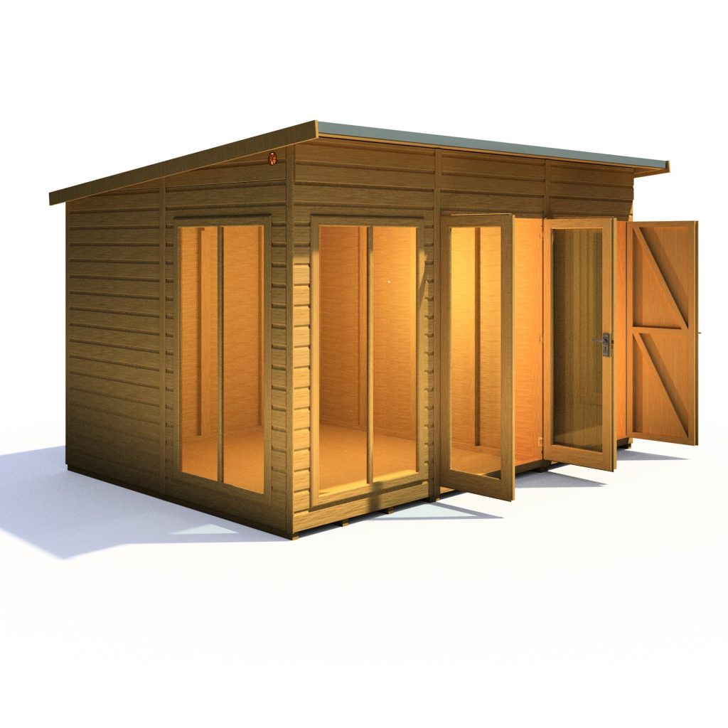 Imagine transforming your garden into a stylish haven with the 12 x 8 Lela Summerhouse. This versatile structure boasts a separate storage room, offering ample space for your garden essentials while keeping your relaxation area clutter-free. With a comfortable 7ft eaves height, the Lela provides a spacious interior perfect for summer dining, unwinding, or indulging in your hobbies.