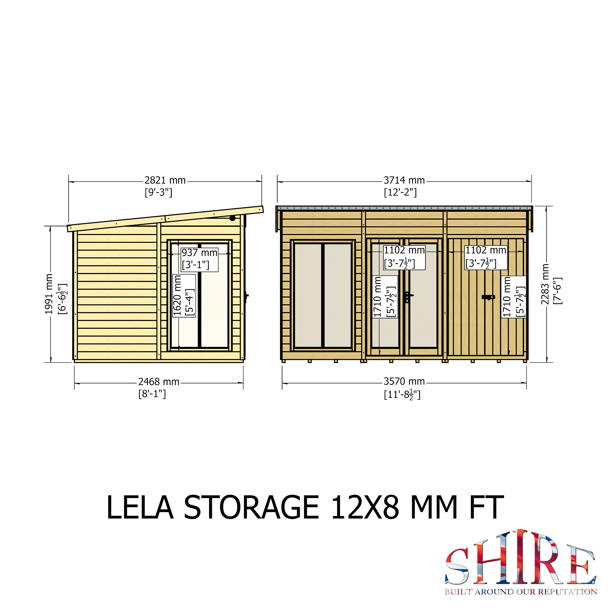 12 x 8 Shire Lela Summerhouse Shiplap T&G Double Door Secure Lock