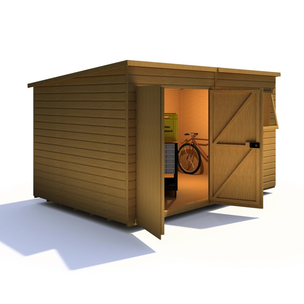 12 x 8 Shire Ranger Pent Shed with Shiplap T&G and Double Doors