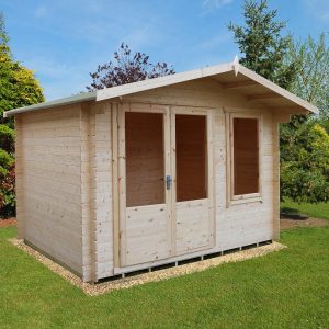 The Berryfield a large and attractive cabin at a great price. This top quality log cabin has 19mm interlocking high grade pine boards to the walls and tongue and groove boards to roof and floor. The building is glazed with toughened safety glass. All timber is Forest Stewardship Council (FSC) Certified to produce an environmentally friendly and quality garden building. The building is supplied untreated ready for you to paint or stain immediately after assembly. Building dimensions are to the edge of the individual boards that make up the unit and will include the crossover of the logs. For critical dimensions use the metric values; imperial dimensions are rounded for description only. Please note that log cabins are supplied as individual log boards that are assembled length by length, building up from the floor. Installation instructions are included. Allowance should be made for the roof overhang and for access around the outside during construction and subsequent treatment.