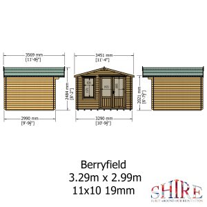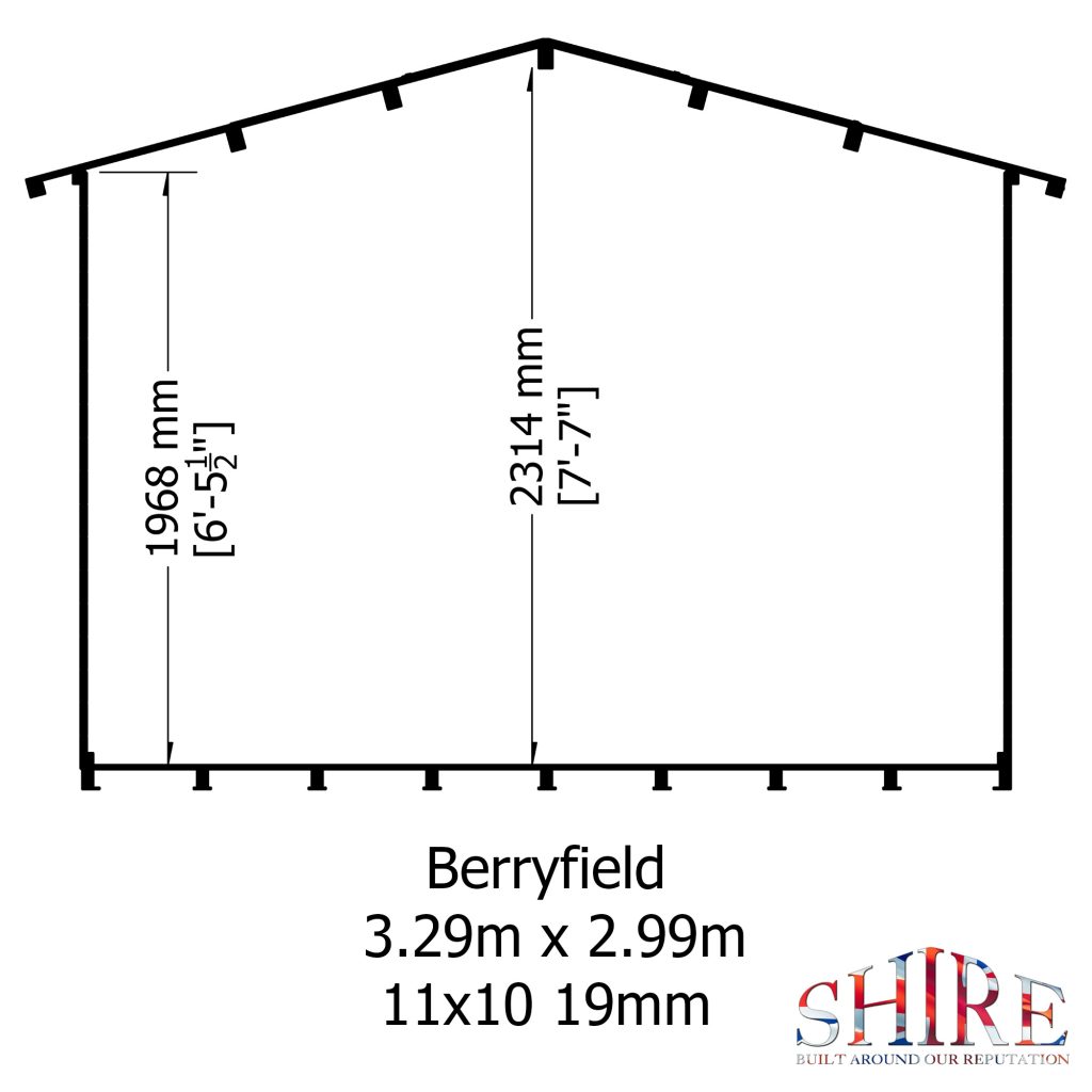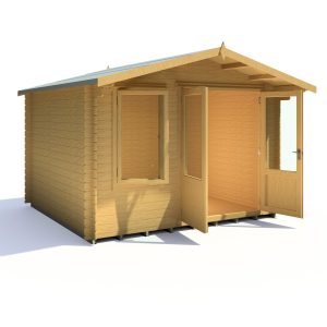 12×11 Shire Berryfield Log Cabin Apex Roof Double Doors