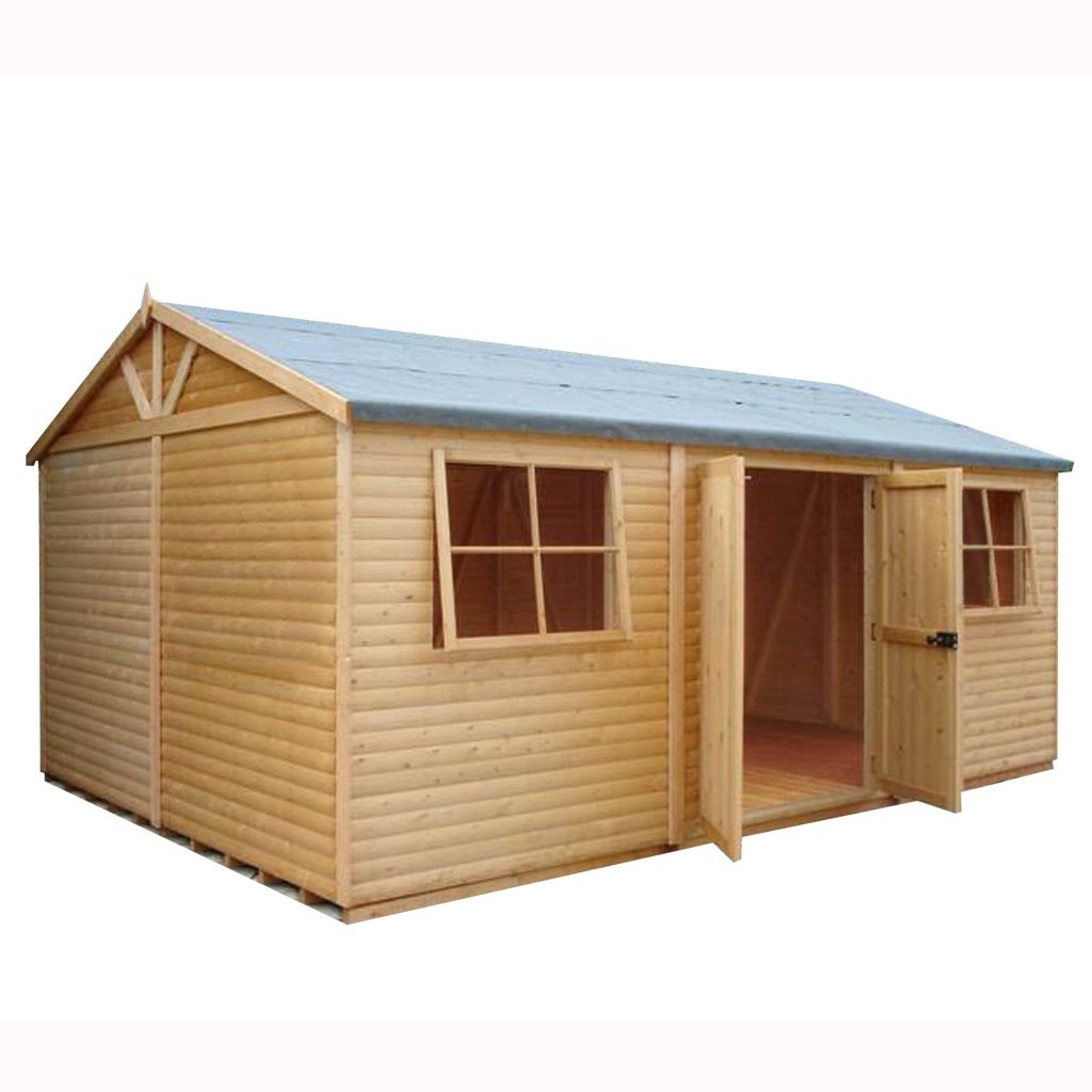 12×18 Shire Mammoth Loglap Shed Reverse Apex Double Doors