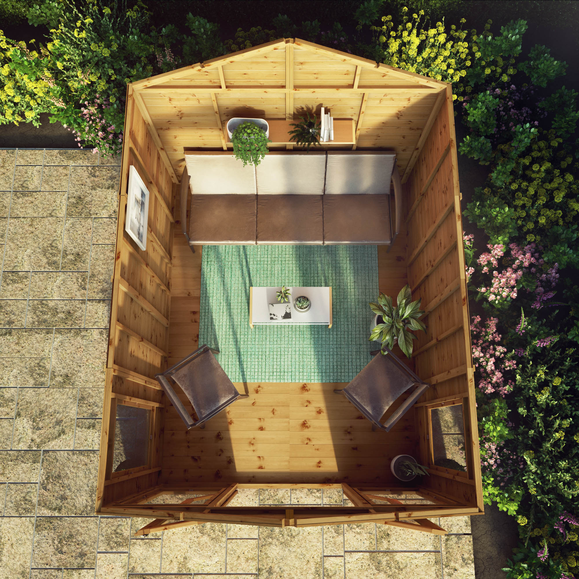 The 10ft x 8ft Premium Sussex Summerhouse is a spacious and stylish summerhouse that offers the perfect place for entertaining guests or as somewhere to sit back, relax and enjoy the views of the garden. Large styrene glazed windows allow light to flood the interior and styrene glazed French doors open out to create a light, airy and welcoming space to enjoy.