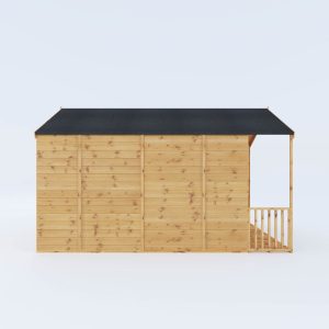 Made using 12mm Shiplap, also known as tongue & groove, the walls of this garden room are designed to keep water and draughts firmly at bay, while providing a robust and long lasting construction. With fully glazed double doors opening out onto the sheltered veranda, this summerhouse features a great place for enjoying the summer weather while being shaded from the sun. The vast interior is spacious with plenty of room for large furniture while four large windows allow the building to flood with light, creating a bright and welcoming space.
