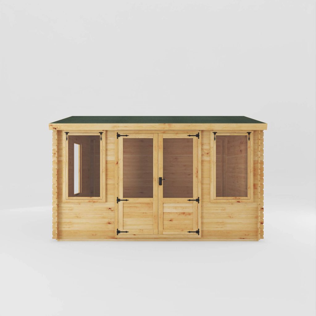 The 4m x 3m Log Cabin offers a stylish, open plan design, finished with traditional features. Designed to maximise the living space within your home while allowing you to make the most of the outdoor space. Perfect as a home office, a place to entertain guests or simply an area to relax and unwind. Large windows are fitted to the front and side, providing panoramic views of the garden for you to enjoy. All of the glazing in this cabin is high strength SAN styrene glazing, a safe and shatterproof alternative to glass, essential if you have a busy garden or young children around.