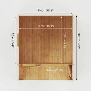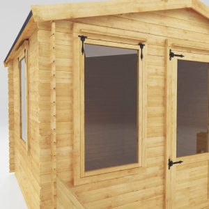 Manufactured using high quality, 19mm log boards, this cabin promises a strong and robust build. The boards interlock using a tongue and groove method, forming a tight seal against water ingress and draughts. The roof and floor are constructed using 12mm tongue and groove boards, to create a hard-wearing and heavy-duty finish, great for heavy furniture and frequently used building. The apex roof line creates a generous amount of headroom, perfect if you’re looking to install tall storage and lighting. The roof is covered by high quality roofing felt, to protect your building from the British weather! A lock and key are supplied, so you can secure you building and belongings away when not in use.