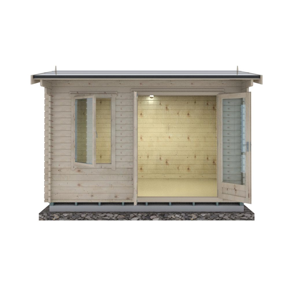 You can upgrade the log thickness to 34mm, 44mm, or 70mm, depending on your needs. With each upgrade, the floor and roof boards increase from 14mm to 19mm thick, and the roof joists are upgraded from 44mm x 70mm to heavy-duty 40mm x 120mm, offering even greater structural integrity and weather resistance.