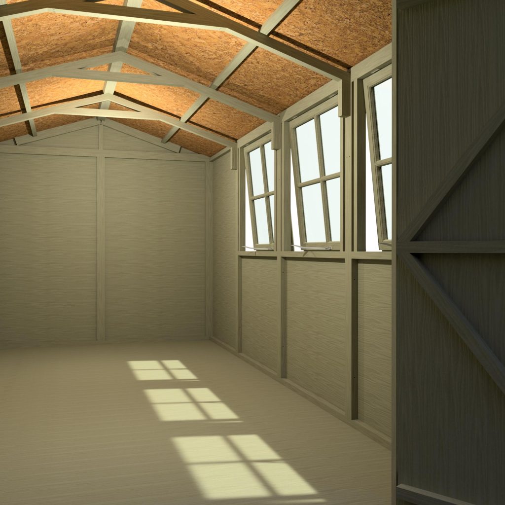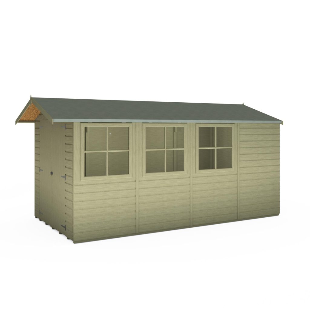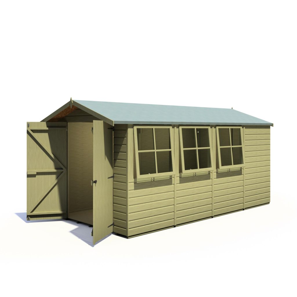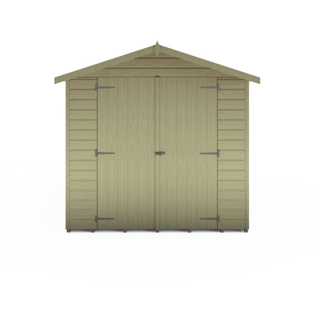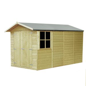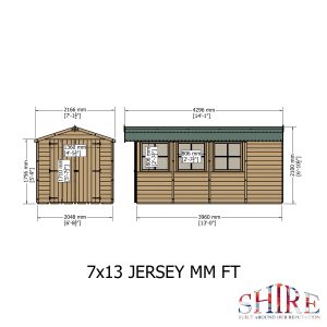 This pressure treated 7′ x 13′ Jersey shed is ideal for those needing loads of storage or workshop space. It has three large opening, joinery quality, storm resistant, windows and wide double doors for easy access. The cladding is 12mm slow grown, very high grade FSC approved pine on 34mm square framing with a T&G floor and solid OSB sheet roof. Roof felt and a fixing kit are provided. The pressure treated timber gives a long life with minimum maintenance although the shed can still be painted or stained for decoration. (Imperial measurements are rounded so please refer to the metric sizes for accuracy)
