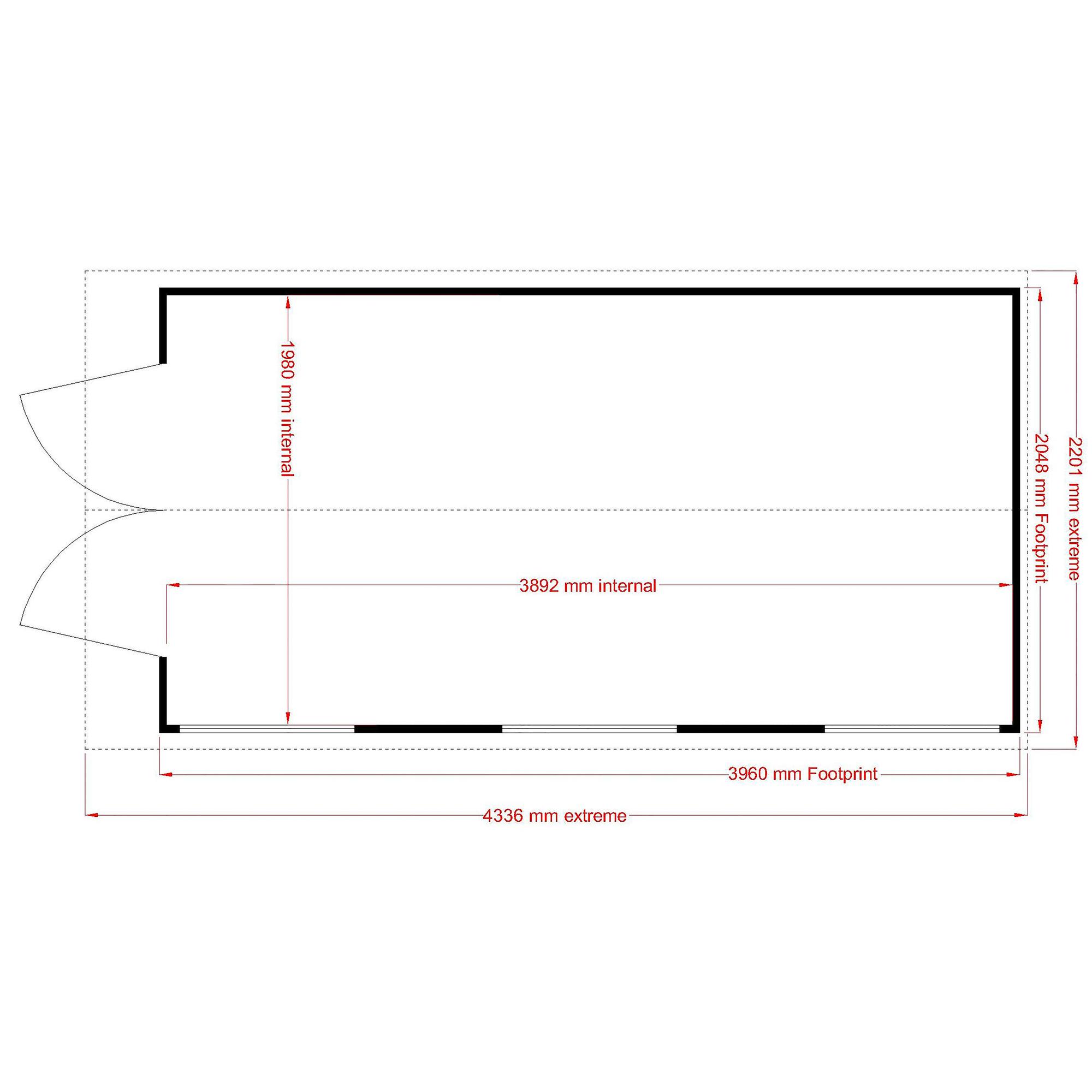 This pressure treated 7′ x 13′ Jersey shed is ideal for those needing loads of storage or workshop space. It has three large opening, joinery quality, storm resistant, windows and wide double doors for easy access. The cladding is 12mm slow grown, very high grade FSC approved pine on 34mm square framing with a T&G floor and solid OSB sheet roof. Roof felt and a fixing kit are provided. The pressure treated timber gives a long life with minimum maintenance although the shed can still be painted or stained for decoration. (Imperial measurements are rounded so please refer to the metric sizes for accuracy)