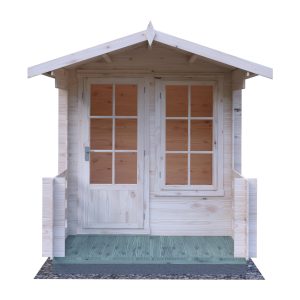 The Maulden is an attractive addition to any garden, the high quality georgian window and door together with decked terrace make for a great building. This top quality log cabin has 19mm interlocking High grade pine boards to the walls and tongue and groove boards to roof and floor. All timber is Forest Stewardship Council (FSC) Certified to produce an environmentally friendly and quality garden building. The building is supplied untreated. Building dimensions are to the edge of the individual boards that make up the unit and will include the crossover of the logs. For critical dimensions use the metric values, Imperial dimensions are rounded for description only. Allowance should be made for the roof overhang and for access around the outside during construction and subsequent treatment. The floor is included.