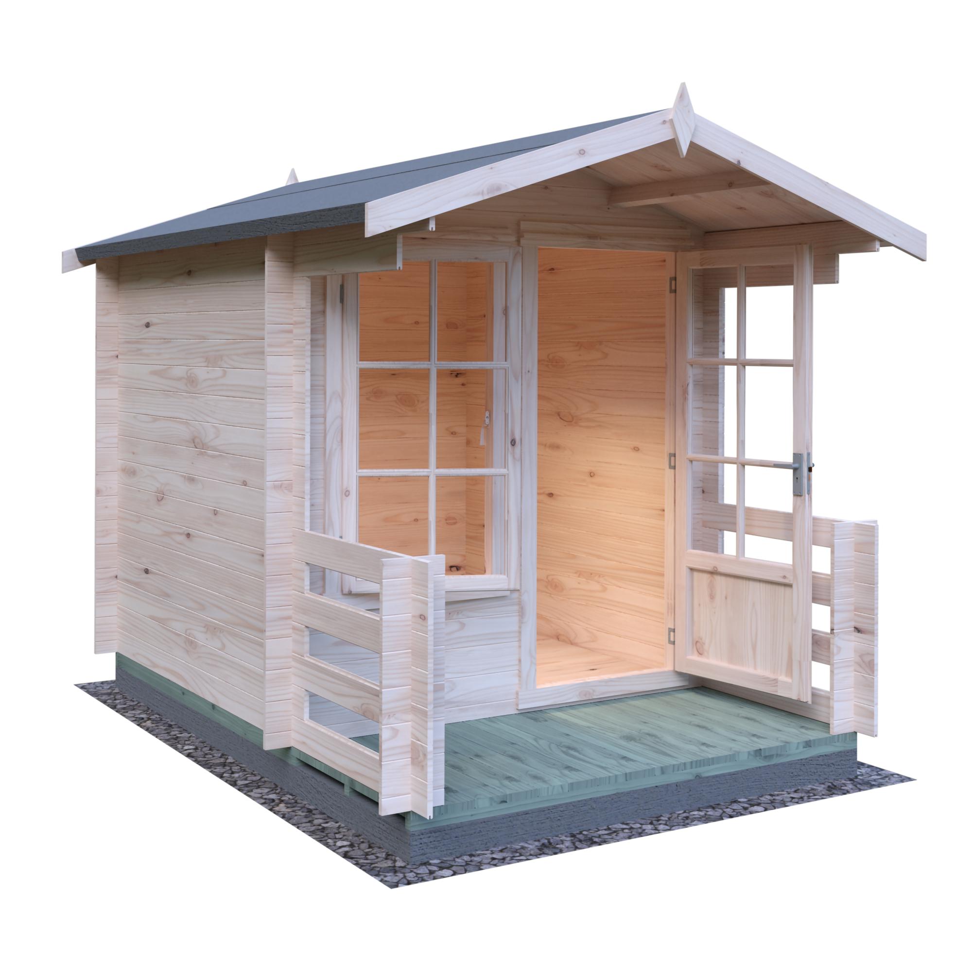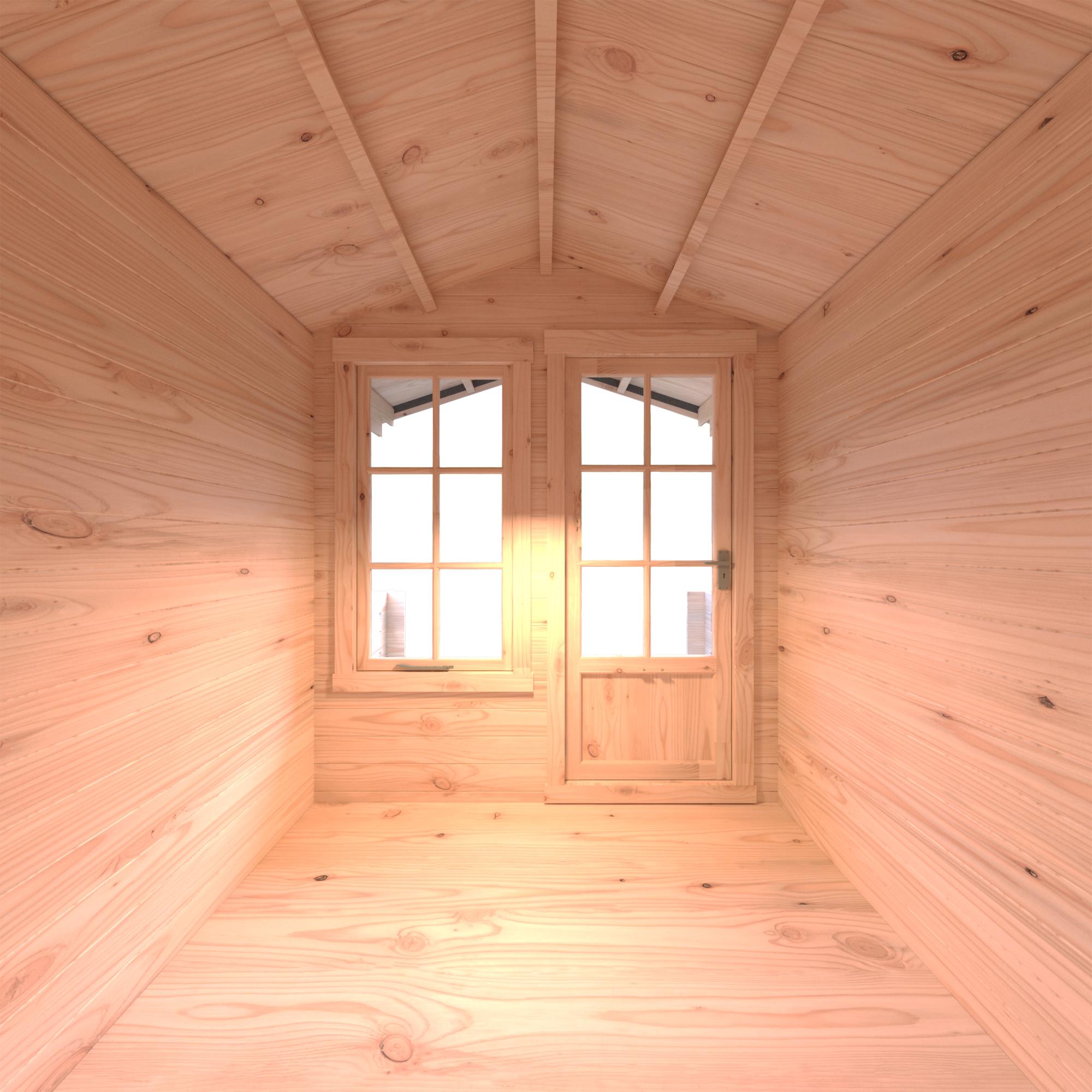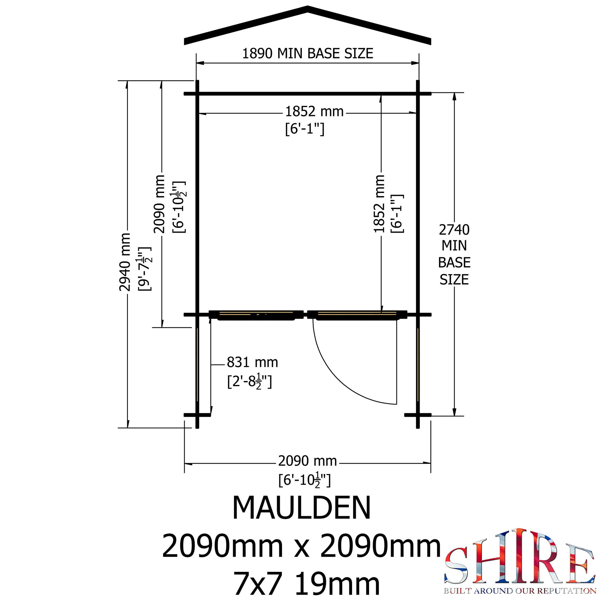 The Maulden is an attractive addition to any garden, the high quality georgian window and door together with decked terrace make for a great building. This top quality log cabin has 19mm interlocking High grade pine boards to the walls and tongue and groove boards to roof and floor. All timber is Forest Stewardship Council (FSC) Certified to produce an environmentally friendly and quality garden building. The building is supplied untreated. Building dimensions are to the edge of the individual boards that make up the unit and will include the crossover of the logs. For critical dimensions use the metric values, Imperial dimensions are rounded for description only. Allowance should be made for the roof overhang and for access around the outside during construction and subsequent treatment. The floor is included.