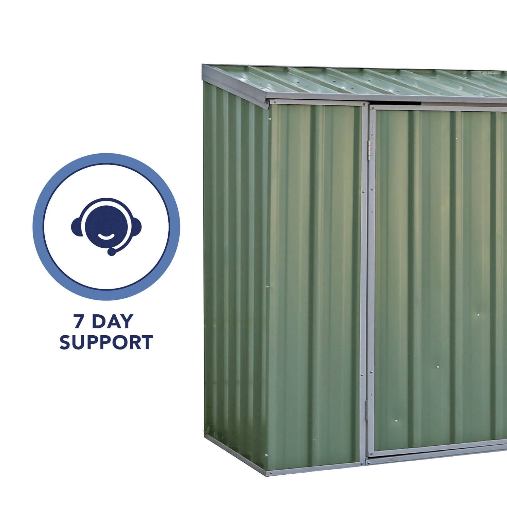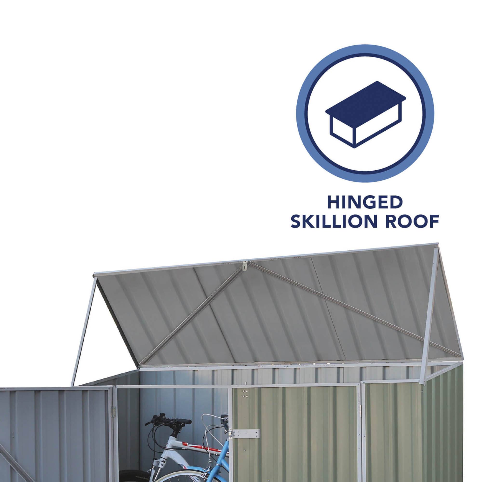 The Absco 7 x 3 Bike Store offers an optimal storage solution for bicycles and smaller outdoor gear. With its doubled hinged doors and skillion roof, accessing your belongings is effortless. Its compact size is perfect for areas where space is limited. Crafted in Australia from preassembled metal panels using the innovative Snap-Tite construction system, assembly is quick and straightforward.