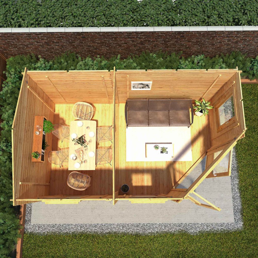 The Corner Lodge Grande Log Cabin will increase the usable space within your home, whether you’ve dreamed of creating the perfect home office or you’re in need of extra space for entertaining guests, this log cabin is extremely versatile and can be built on either the left or right of your garden. The light and airy interior space would be ideal for a hobby room or study, featuring high ceilings and ample room for multiple desks, lots of seating and large storage. Or perhaps you simply require somewhere peaceful for you to relax and unwind. This cabin has lots of space for cosy sofas, comfy armchairs and shelves full of books! The log cabin is multi-functional with endless uses, once furnished with your favourite pieces and decorated to your liking, this log cabin will become the focal point of your garden.