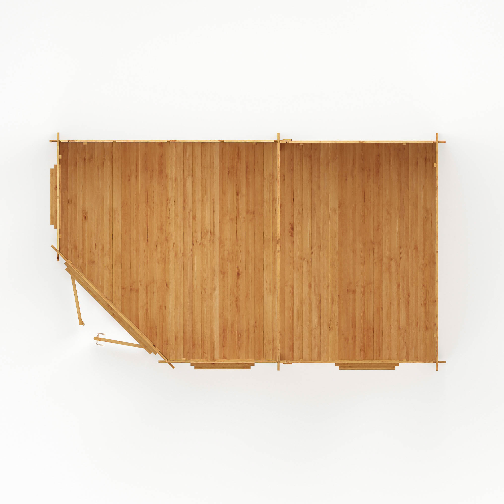 The Corner Lodge Grande Log Cabin will increase the usable space within your home, whether you’ve dreamed of creating the perfect home office or you’re in need of extra space for entertaining guests, this log cabin is extremely versatile and can be built on either the left or right of your garden. The light and airy interior space would be ideal for a hobby room or study, featuring high ceilings and ample room for multiple desks, lots of seating and large storage. Or perhaps you simply require somewhere peaceful for you to relax and unwind. This cabin has lots of space for cosy sofas, comfy armchairs and shelves full of books! The log cabin is multi-functional with endless uses, once furnished with your favourite pieces and decorated to your liking, this log cabin will become the focal point of your garden.