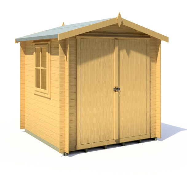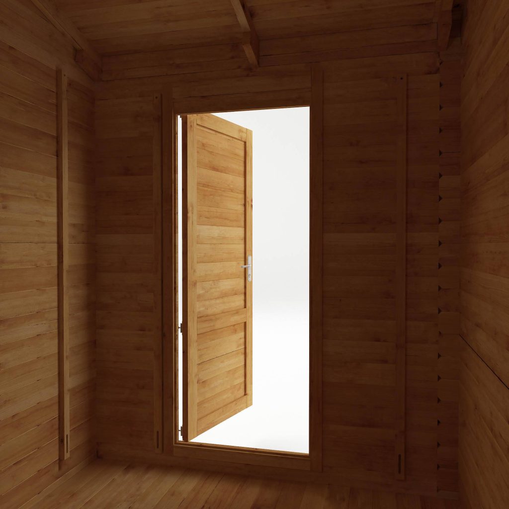 Manufactured using high quality log boards, this cabin uses an interlocking system to form a tight seal and protect your building from water ingress and draughts. This method of construction also creates a strong and heat retaining structure, allowing you to use this log cabin whatever the weather! The roof and floor are constructed using tongue and groove boards, providing a heavy-duty and hard-wearing finish, ideal for taking the pressure of heavy furniture and frequent use. A high, hipped roofline features within this cabin which is great if you wish to install ceiling lights. The roof is covered with high quality roofing felt, to give your log cabin further protection from the elements. This log cabin comes with double glazing as standard. Supplied with a secure mortise lock and key, you can be confident in the security of your new building.