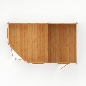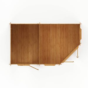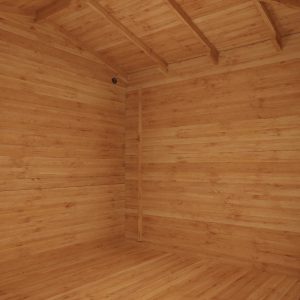 The Corner Lodge Plus Log Cabin has a spacious and open interior, ideal for those looking for an extension of their living and entertaining space. Whether you’re looking for a garden room for your family to enjoy on summer evenings or if you just want to create somewhere you can relax and unwind. This vast floor area if great for large furniture, dining tables and storage, so you can create the perfect garden retreat. Or perhaps you require a home office or studio, the heavy-duty flooring is robust and can easily bare the pressure of heavy equipment and tools. The additional storage this cabin has to enough room for lawn mowers and other garden tools, allowing you to keep your equipment safe and secure while keeping your garden neat and tidy.
