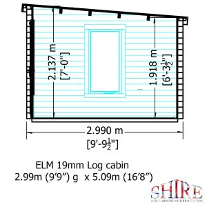 17×11 Shire Elm Pent Log Cabin with Side Storage Shed